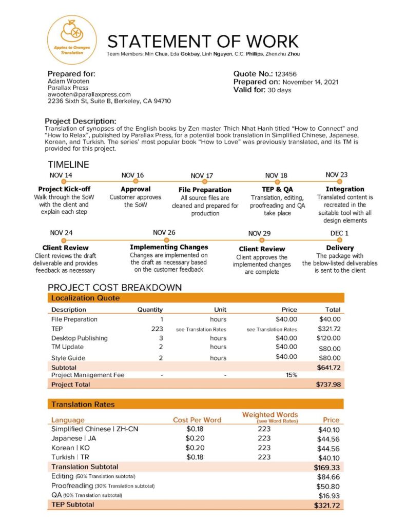 Our client was Parallax Press, the publisher of English books by Zen master Thich Nhat Hanh. The project involved the translation of synopses of two books, titled “How to Connect” and “How to Relax”.