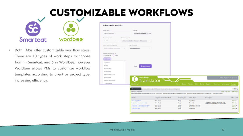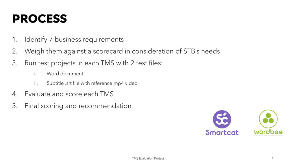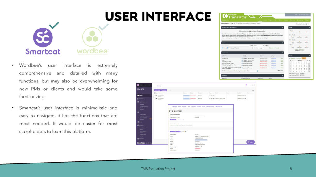 My two chosen TMSs that I compared were Smartcat and Wordbee – check the video and my final presentation deck to see the results of the evaluation!