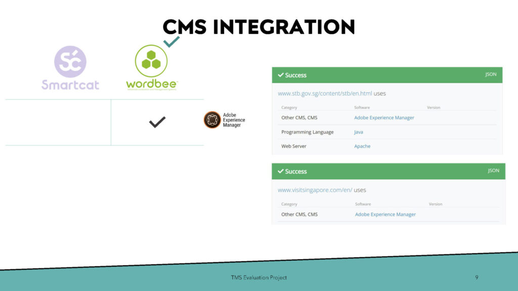 In this project, I wanted to simulate the process of comparing and evaluating two TMSs for the Singapore Tourism Board (STB), and wanted to find out what kind of organizational needs a government agency like STB would have. It was an insightful project as I was able to go through the analysis and final presentations of findings, just like one would in a real business setting – either as a vendor LSP or in-house client ordering translations.