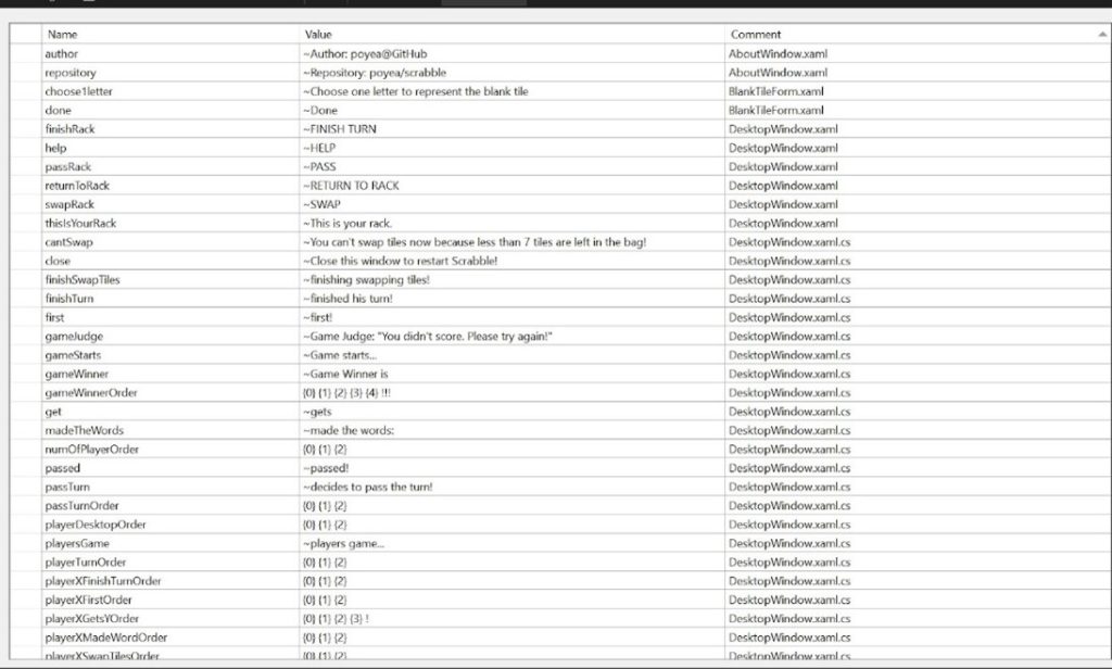 That brings me to my most important learning point from this project, that above all, one needs to always be inquisitive and wanting to discover. While working on the Scrabble game, we encountered new challenges that we were unfamiliar with, including how to localize a completely new file format (XAML forms) and correspondingly how to implement the language picker.